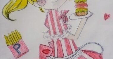 みなさんこんにちは。 こむぎです。 今回はイラストを紹介します。 テーマは「ハンバーガー...