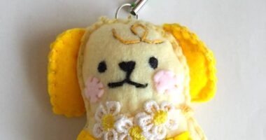 花をかかえるワンちゃんストラップ