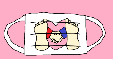 オリジナルイラストがプリントされ、背景色も自由に選択されたオリジナルマスク。 皆さんこんにちは。10月9日は「共...