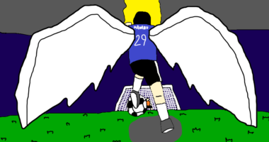 選手が背中にある翼を広げ、猛スピードで相手チームのゴールキーパーが守備するゴールめがけてダッシュする。また、会場の後ろ...