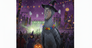 そろそろハッピーハロウィーン!!!が近づいています。 このハシビロコウの絵は、第三の手がランタンを持って...