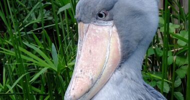 お土産にハシビロコウのぬいぐるみを貰いました。