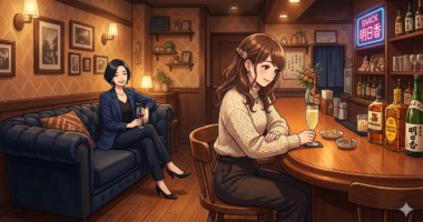 ①私が飲食店で働いていた時の事、開店後、私は、カウンターに座って、お客様を待っていました。一人の同僚は後ろのソファに座...