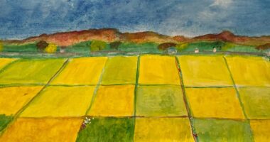 9月下旬から10月に秋空に風が涼しくそよぎ始めると、黄金色に色づく田んぼ アートが広がり始め、親戚総出...