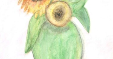初めての水彩画 2 「ひまわり」と「レインボー菊」
