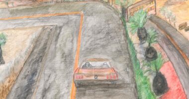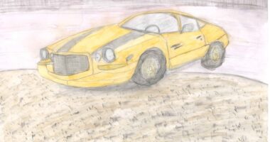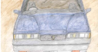 昔のアメ車と水彩画