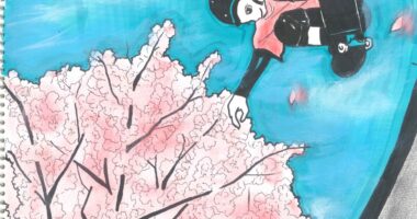 sakuraこんにちは。TOSHIです。 今回は桜のイラストを描きました。 「動きのある絵」をテーマにスケボー...
