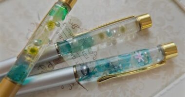 前回は花材を入れたので、溶剤を入れて接着していきましょう!溶剤を入れる中栓が入る分、余裕を持って注ぎます。溶剤はボトル...