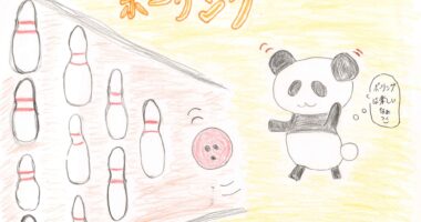 【ボーリング楽しいよ!🐼】パンダさんが一人でボーリングを楽しんでいる様子を描いてみました。 まるちゃんも気分転換によく1人でボーリ...