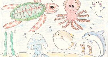 【海の生き物🐡もりだくさん!】今回は海の生き物のイラストを描いてみました。(^▽^)/ 海の生き物で描いて1番難しかったのは、ウミガメ...