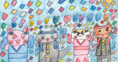 今回は、応援団になった動物たちを描いてみました! ねこくんとハムスターちゃんとオオカミくんとウサギちゃんで応援し...