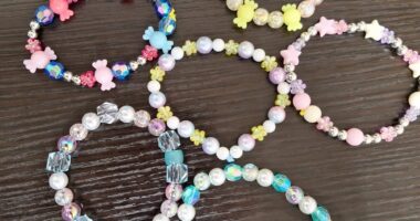 こんにちは、楽しく作っています。 ①先は、ゴムの長さに切ります。ゴムの先端に結びます それが出来たら通すビ...