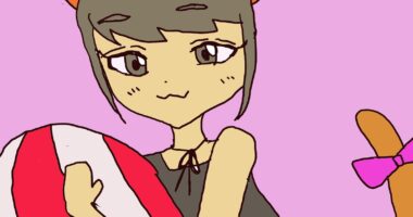 初めてパソコンで絵を描きました。リボンを腕につけた蝶の女の子を描きました。背景はピンクにして羽の部分は青にしてメリハリ...