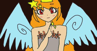 今回は天使の女の子を描きました。羽と天使らしく王冠と星をつけてみました。天使なのでロングヘアにしてみました。背...