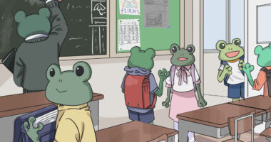 今回のイラストはカエルたちの放課後の教室というテーマで描きました。 黒板の文字を消す先生カエルや、友達の...