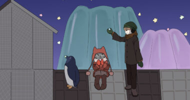 今回は狐の嫁入りをテーマに描きました。 物語は狐の嫁入りに遅れて雨宿りしている狐の親子と、人間のような狐...