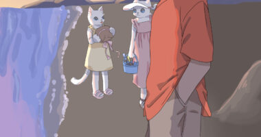今回は、夕暮れの砂浜でたそがれているトナカイと、砂遊びを終えて帰ろうとしている猫の親子を描きました。 海...