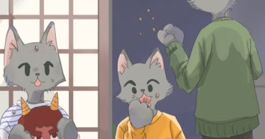 今回は、節分の猫たちのイラストを描きました。 鬼の役をして疲れた猫、豆をたくさん食べる猫、後ろで豆をまく...