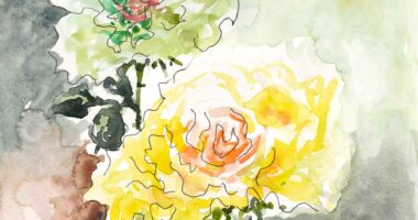 薔薇二輪(水彩画)