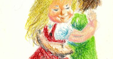男の子女の子(クレヨン画)