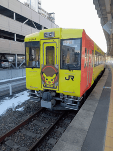 岩手県一関市の一関駅と宮城県気仙沼市の気仙沼駅を結ぶ大船渡線で土日祝日などに運転されているピカチュウがラッピングされている電車です。車内もピカチュウ!