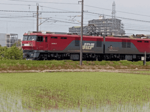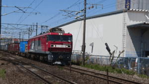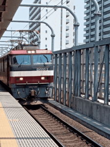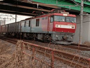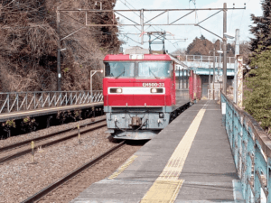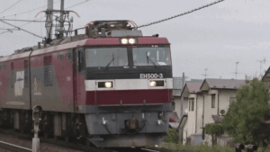 1997年にデビュー。東北本線で活躍する二両で一つの巨大な機関車。