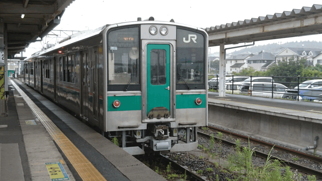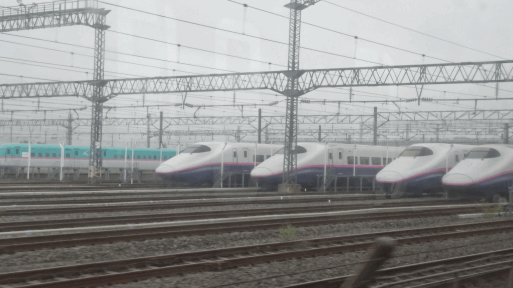 利府行きの電車の車内から新幹線車両基地が見えます。