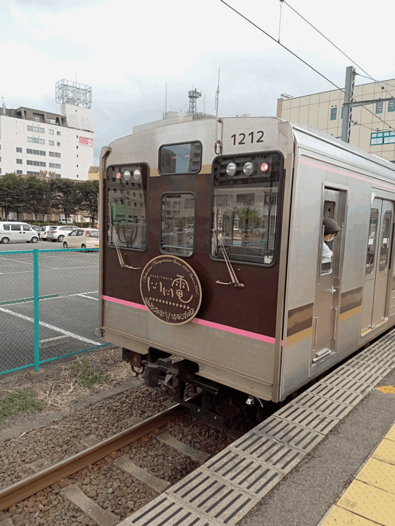 もともとは東急電鉄の電車を改造して2両にしたというわけ。関東から東北の福島にやってきた。茶色の電車。