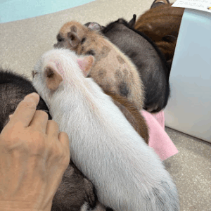 豚さんを撫でながら、観察してみると、固めの毛が生えていたので、驚きでした!そして、どの豚さんも口をくちゃくちゃと音を立てながら動かしているので、なにか食べているのかな?と思ったのですが、それは豚さんの習性によるもので、エアー咀嚼というものでした。エアー咀嚼とは、豚の満腹中枢が発達していないことにより、空腹を感じて、食べ物を食べていなくても、食べ物を食べているかのように口を動かして、咀嚼する動作することです。常にお腹が空いているなんて少しかわいそうな気持ちになりますね(泣)