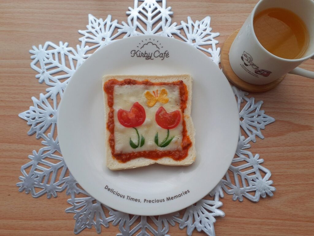 てんとう虫と四つ葉のクローバーのピザトースト🐞🍀