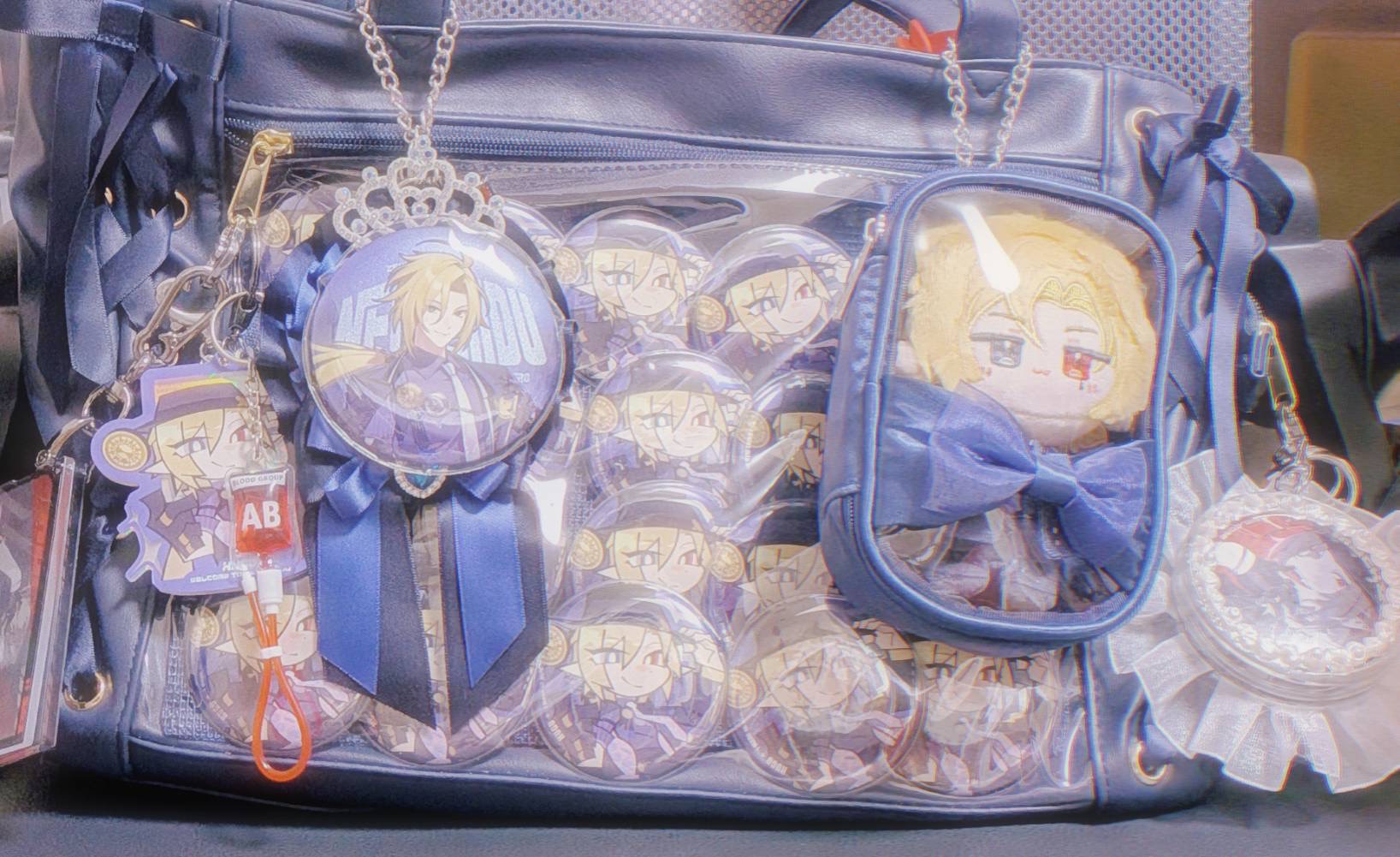 自分でデザインした応援グッズや小物などを手作りすることです。例えば推しのぬいぐるみ「推しぬい」を作成したり、推しの写真やシールなどを貼る「シール帳」、推しの缶バッジやキーホルダーなどを飾って持ち歩く「痛バッグ」があります。