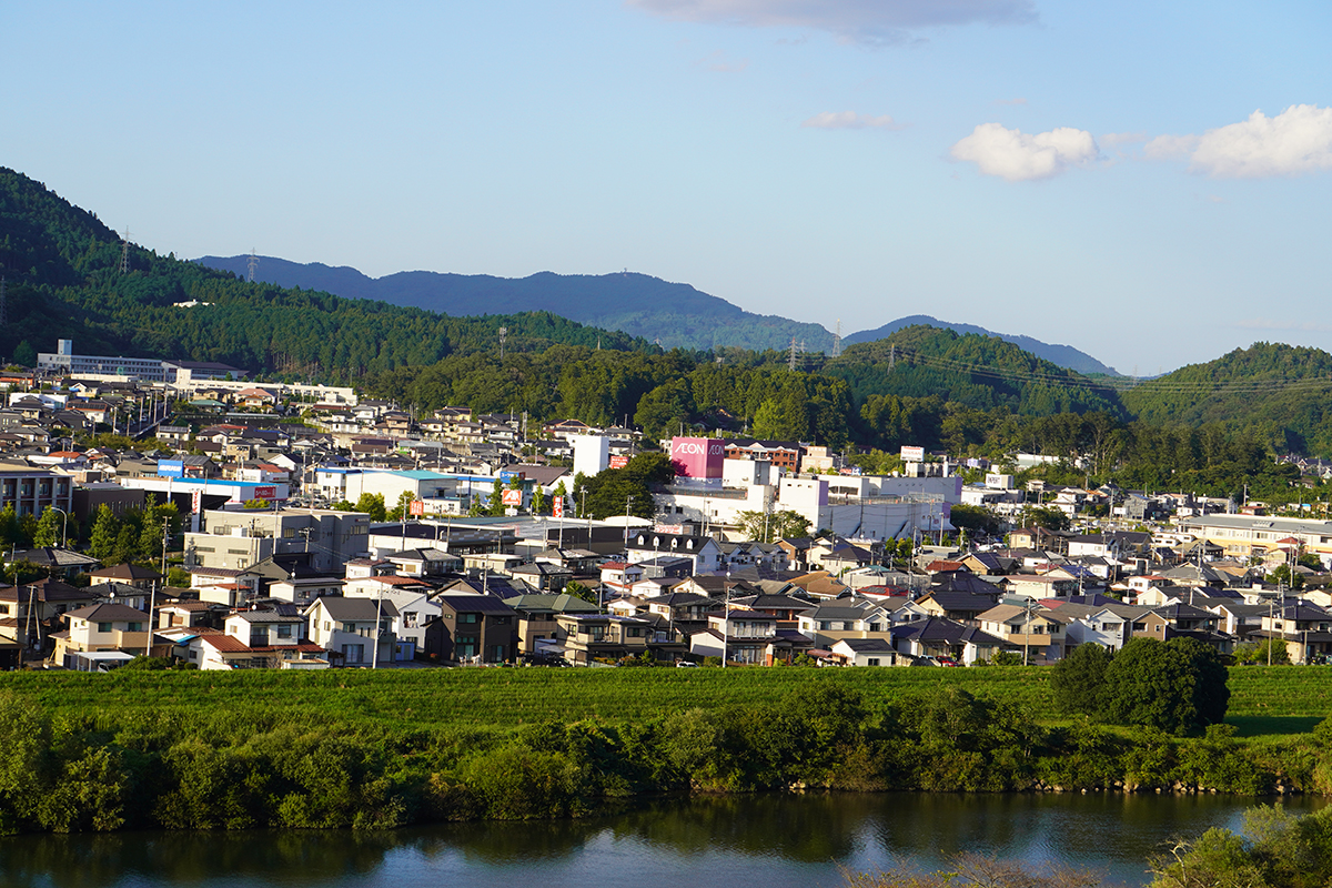 中腹の展望デッキからは町を見渡せます。春には一目千本桜が一望できます。