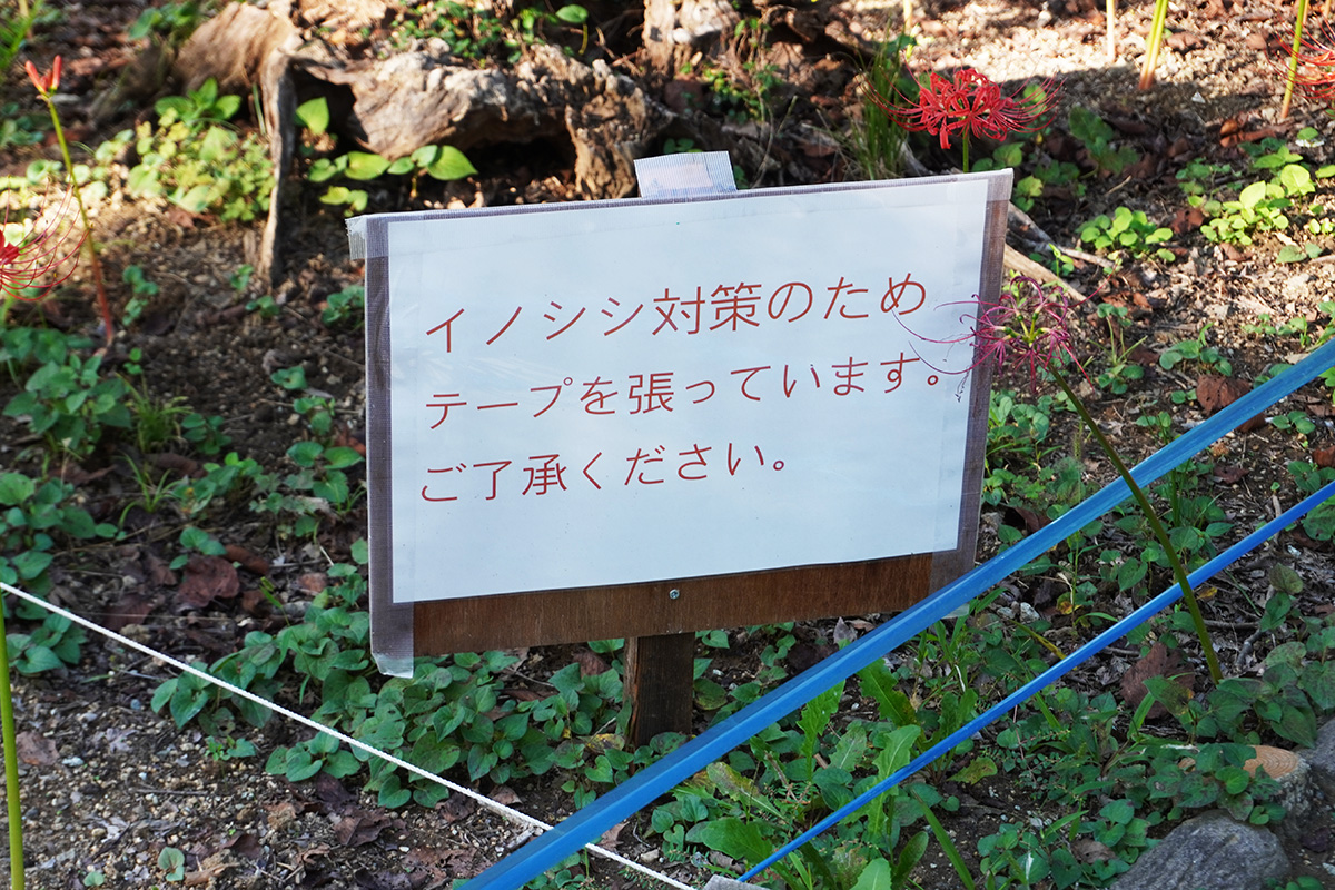 林の奥では子イノシシを見かけました。今年は球根を掘り返される被害が例年より多発したそうです。