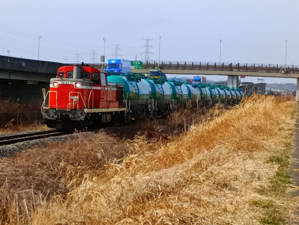 返却回送のタンク列車の動画です。仙台港に向けて走っています。