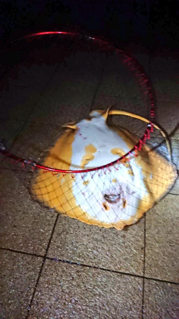 夜の海はバケモンも居ます。アカエイ。尻尾に毒があり刺されたら病院行きです…