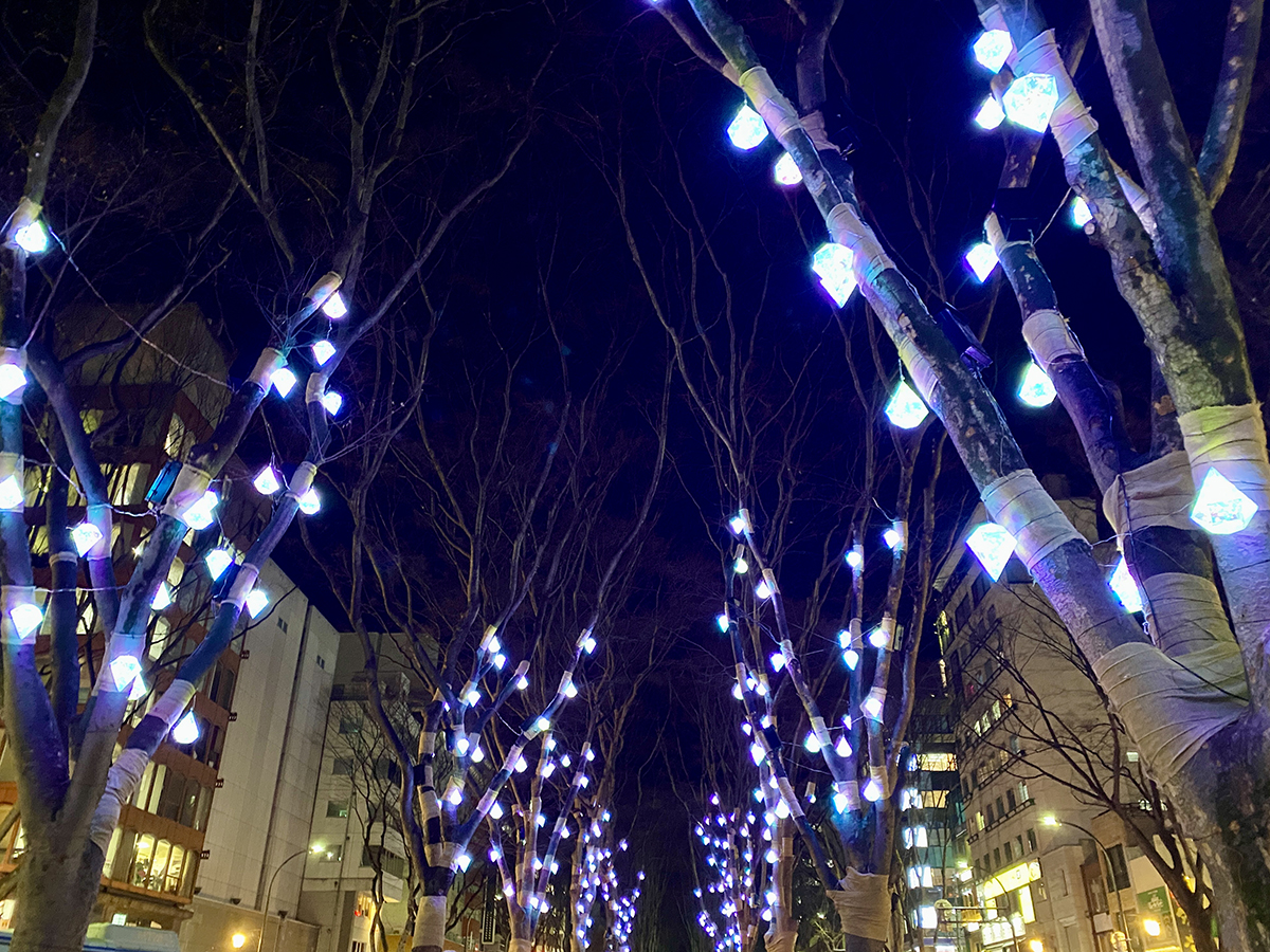 けやき並木に宝石のような装飾がされていました。光のページェントとは全く違った雰囲気を味わえました。