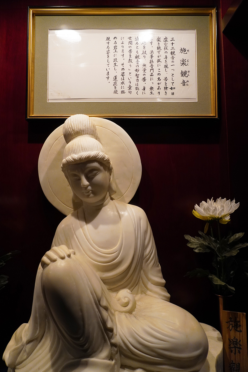広角レンズは持っていないので、標準レンズで撮影しました。観音像から上は空けないで、観音像から下は空けて撮ると、さらに巨大感が増しました。
