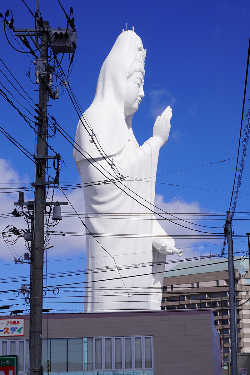 別の場所からも撮影。住宅街にある大観音像は非日常感を感じました。