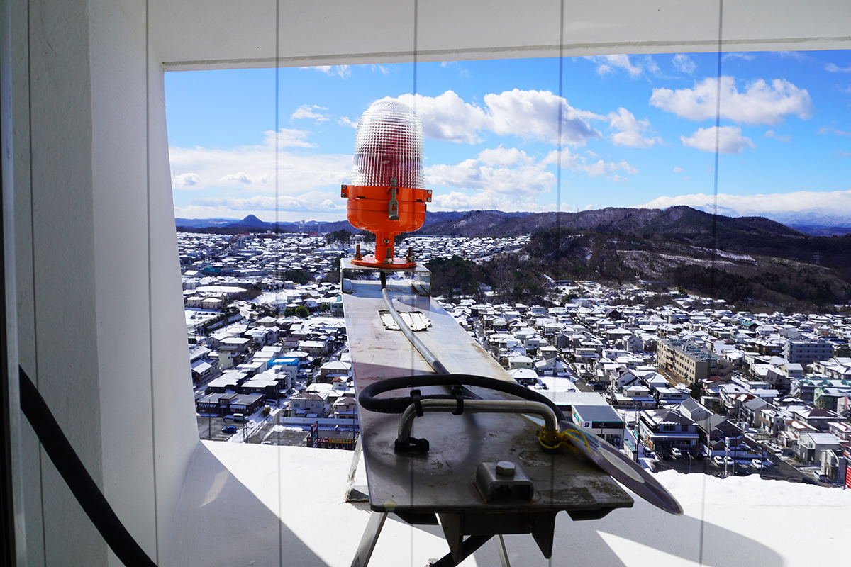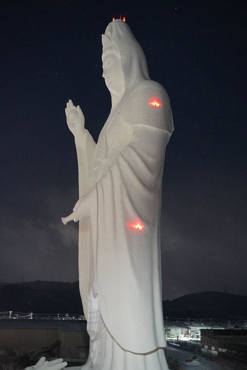 夜に観音像の周りに見えていた赤い光はこれだったのですね。航空障害灯と言って、60メートル以上の建築物に義務付けされているそうです。
