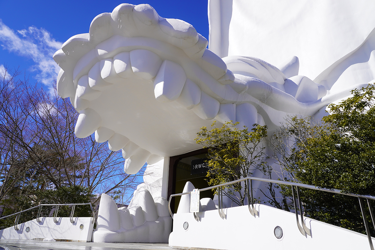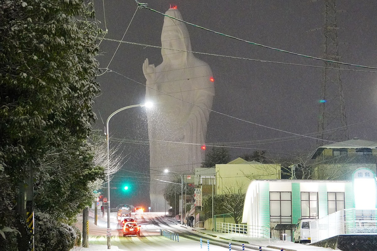歩道には雪が積もっていました。観音像へは宿泊したホテルから徒歩1分程で到着しました。