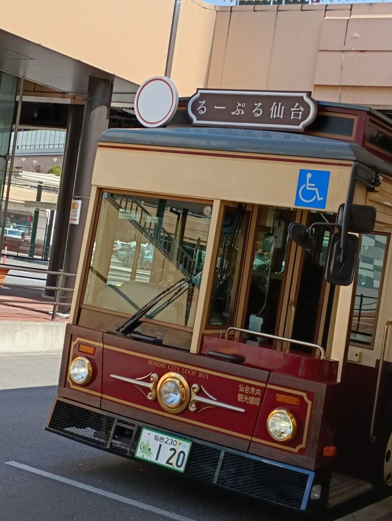 るーぷる仙台バスというレトロな見た目の観光地を回る観光バスです。瑞宝電や大崎八幡宮にも停まります。