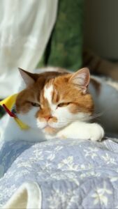 綺麗好きで潔癖症の気難しい猫である。最近はもう10歳以上の高齢猫にもなって消化機能が弱く、たまに毛玉や餌を吐いたりしてしまう。