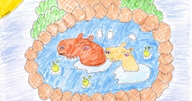 夜の風景のもとで、カピバラ2匹が温泉につかる様子が温かく感じられる様子を 描いてみました。温泉といえば、ゆず湯と...