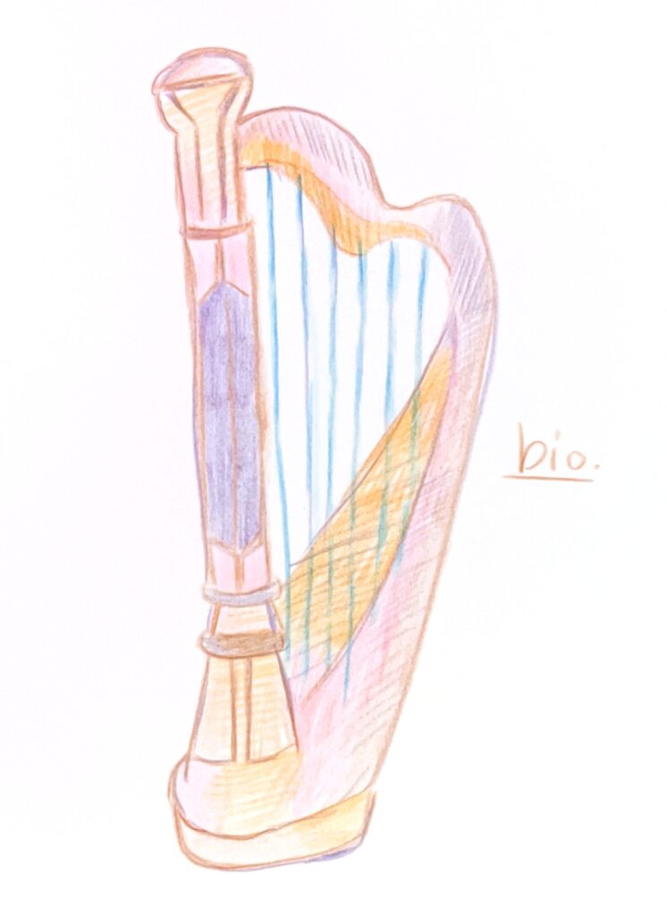 今回の挿絵はハープです。レミの持ち道具です(もちろんアニメには似せてなく、ネットの本物を参考にしました)