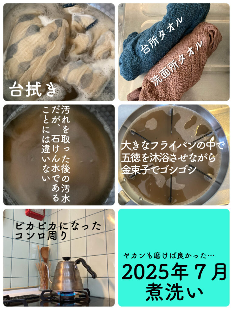 1回目の泥水めいた熱々の石けん水は取っておいて拭き掃除に再利用!