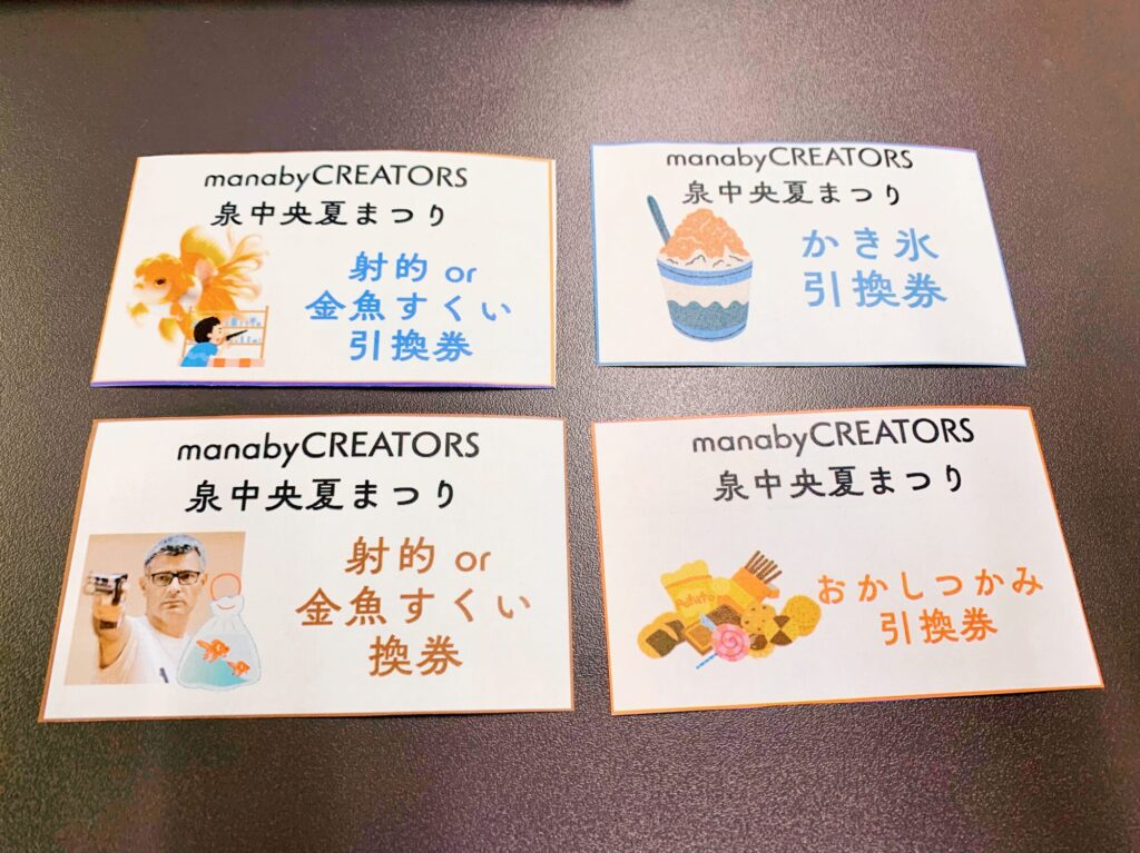 出店はおかしすくいにおもちゃの金魚すくい、かき氷に射的と4つあり、スタッフさんからチケットを配られてクルーの皆さんとそれぞれ好きな出店を楽しみました。