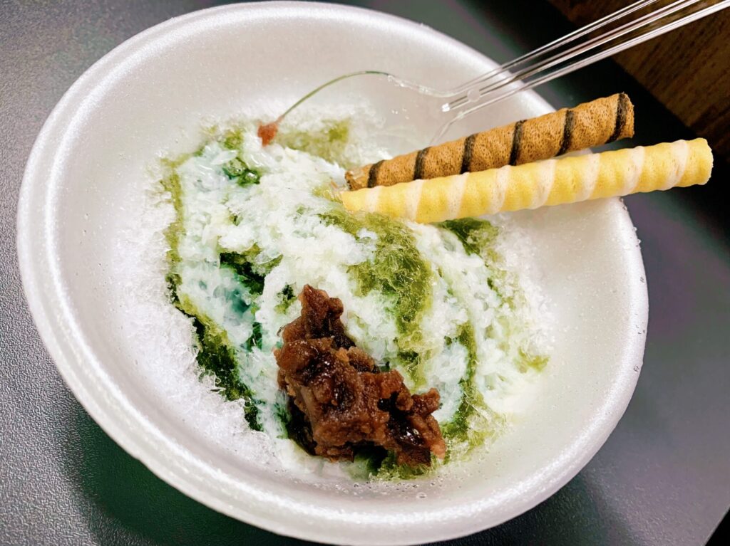 今回も悩みましたが抹茶練乳に粒あんをトッピングしました。シンプルながらも間違いのないおいしさでした☺︎