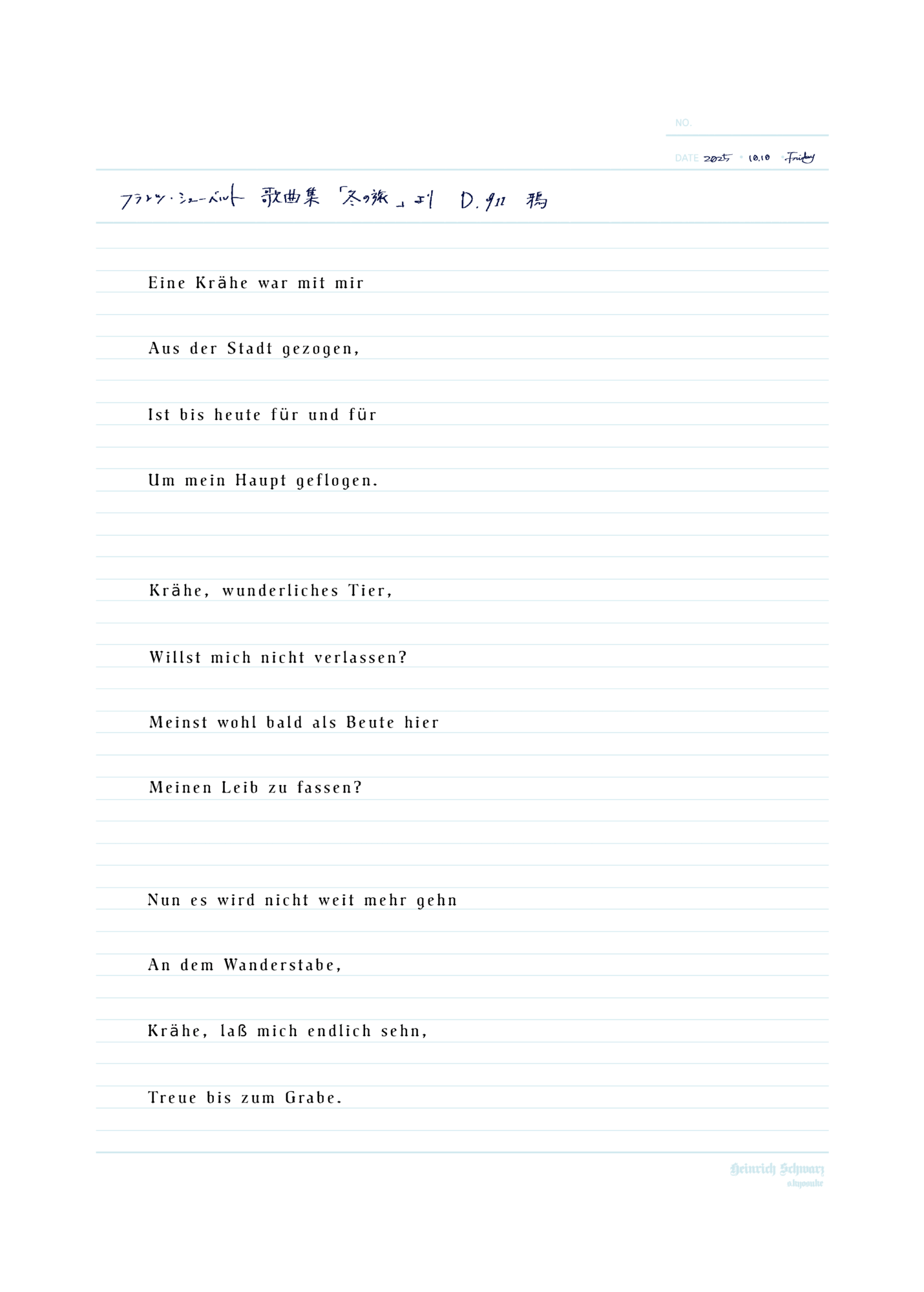 今日のHeinzの脳内ソングは、フランツ・シューベルトの「歌曲集 冬の旅」より、鴉という曲がずっと流れておりまして。