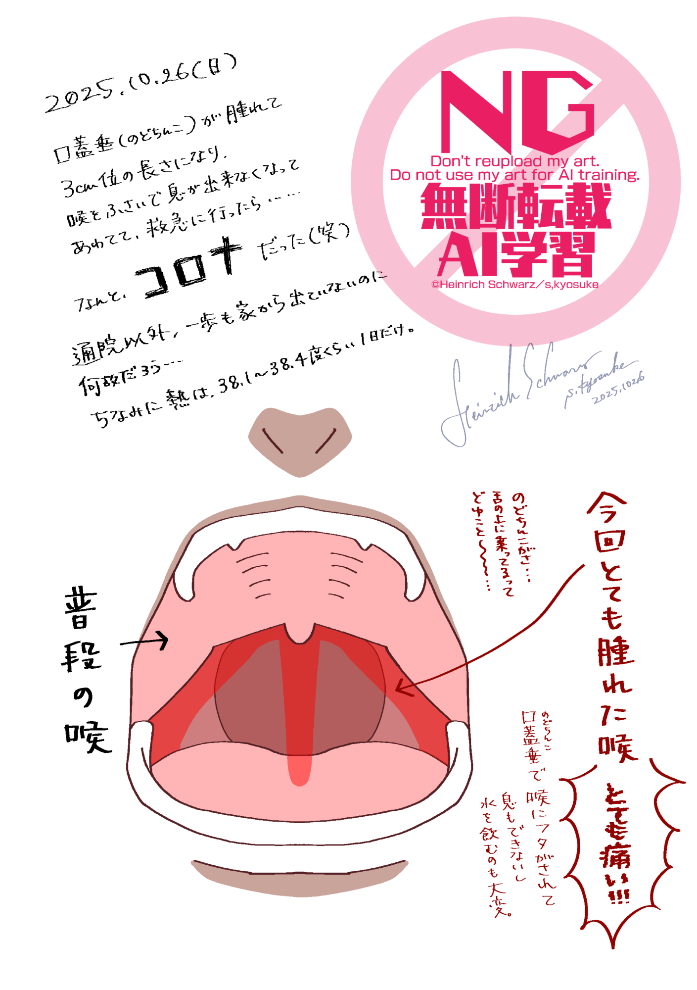 しかも口蓋垂が腫れすぎて舌の上までびろーーーーーーーんと伸びているの、どゆこと…