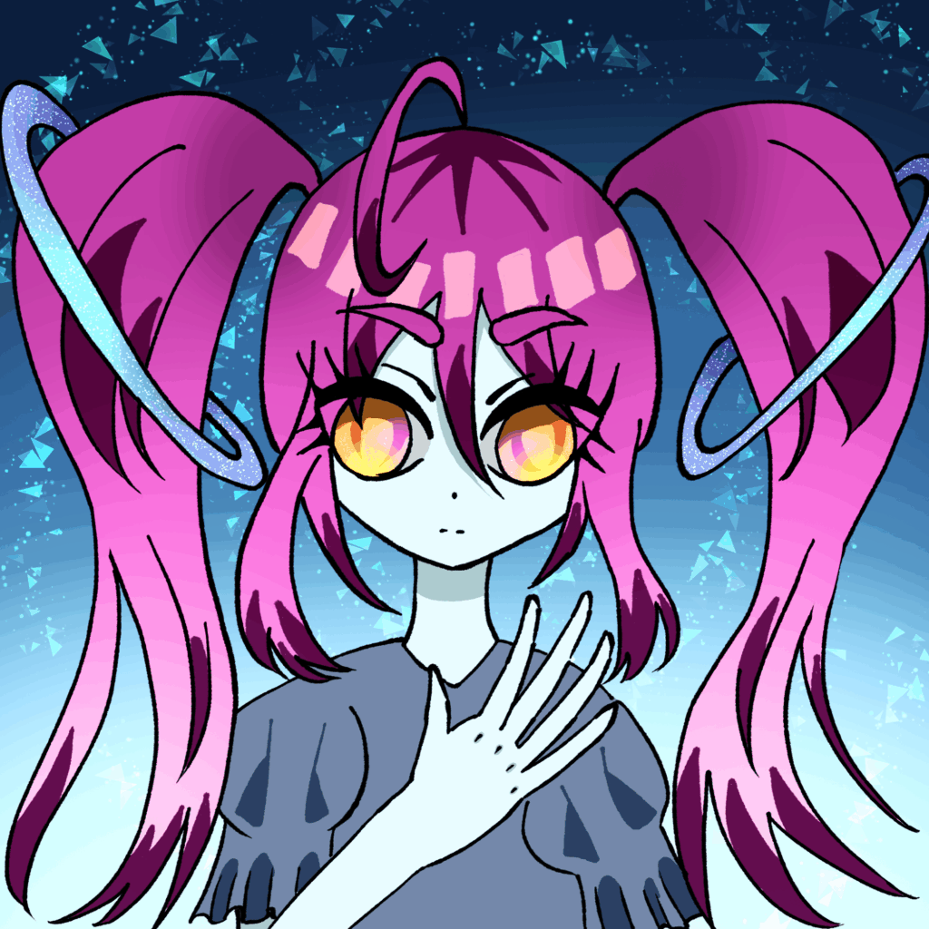 闇のイラストを描いた時におめめがめっちゃでかいの良いなと思ってそれをベースに学んだ描き方、塗り方を試しました。